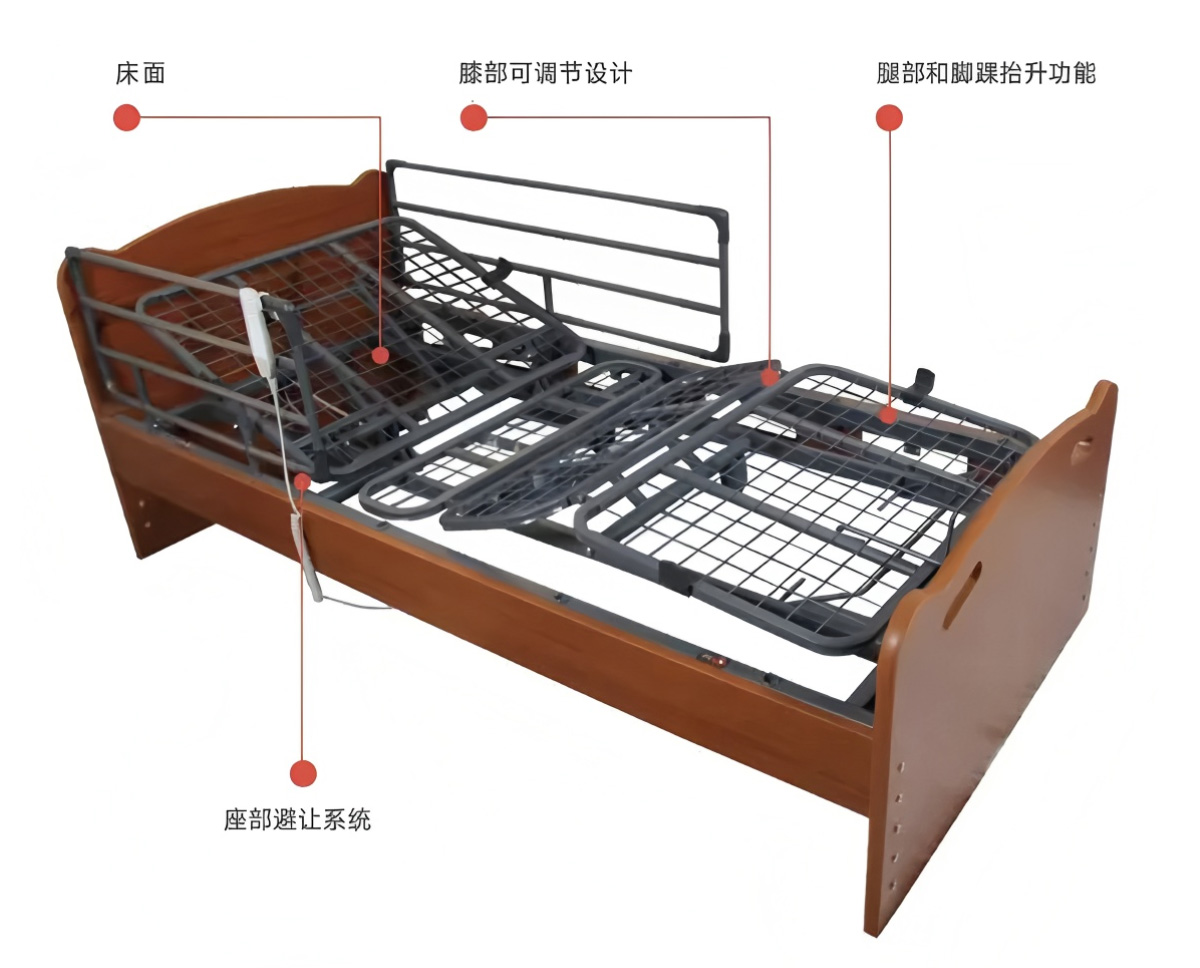 电动床膝部床面设有两档可供调节,从而满足不同身高使用者的人体需求。